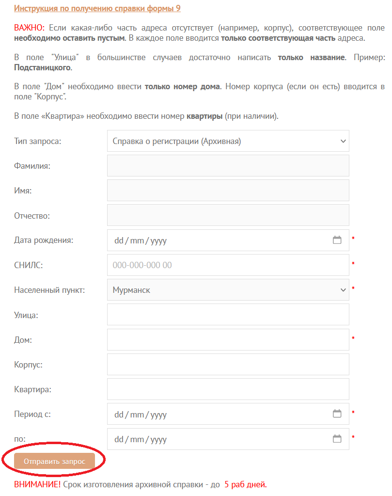 Инструкция по заказу архивных справок Ф.9