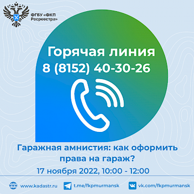 17 ноября с 10:00 до 12:00 в Кадастровой палате по Мурманской области пройдет горячая линия, посвященная вопросам «гаражной амнистии». По законодательству до 1 сентября 2026 года граждане могут оформить в собственность в упрощенном порядке гараж и земельный участок под ним.