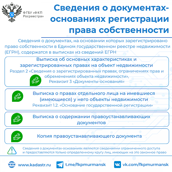 Эксперты Кадастровой палаты по Мурманской области рассказали, как можно получить сведения о документах, на основании которых зарегистрировано право собственности в Едином государственном реестре недвижимости (ЕГРН).