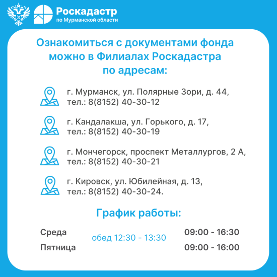 В филиале ППК «Роскадастр» по Мурманской области на хранении находится более 32 тысяч материалов государственного фонда данных, полученных в результате проведения землеустройства (ГФДЗ). Материалы ГФДЗ содержат ценную исходную информацию об объектах недвижимости и при возникновении земельных споров позволяют подтвердить факт существования земельного участка, а также факт установления границ участка на момент его предоставления и формирования.