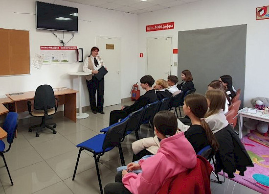 Школьников ознакомили с интересными для них услугами, такими как, «Пушкинская карта» и заполнение резюме на портале «Работа.ру» для трудоустройства. Дополнительно были затронуты вопросы мошенничества в Интернете.